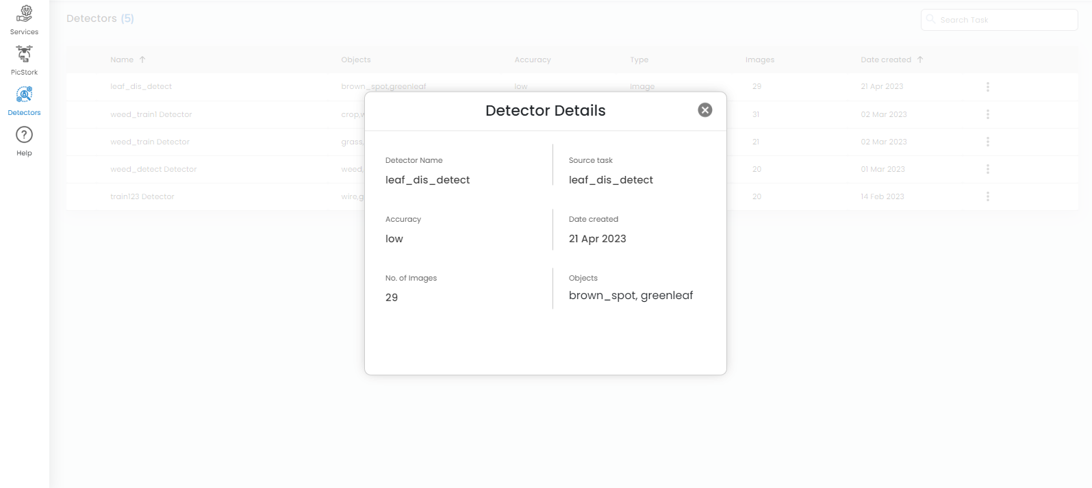 * **Images:** The number of images used for creating the detector is displayed here.
