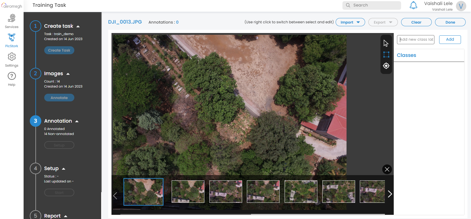 Add the desired classes for annotation. Perform manual annotations on all the images as shown. Annotate the maximum number of objects to get the better accuracy of the result.
