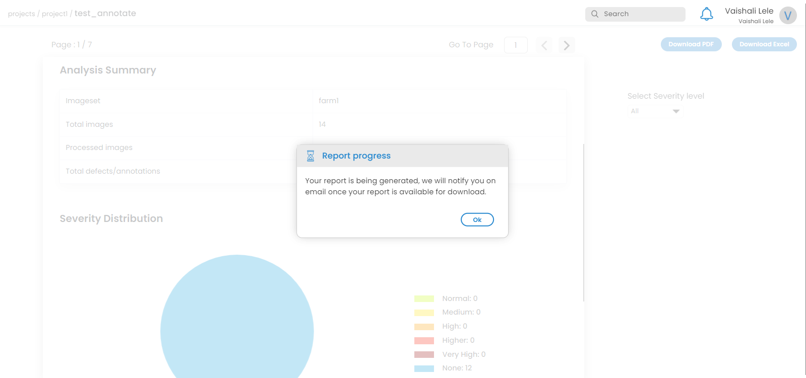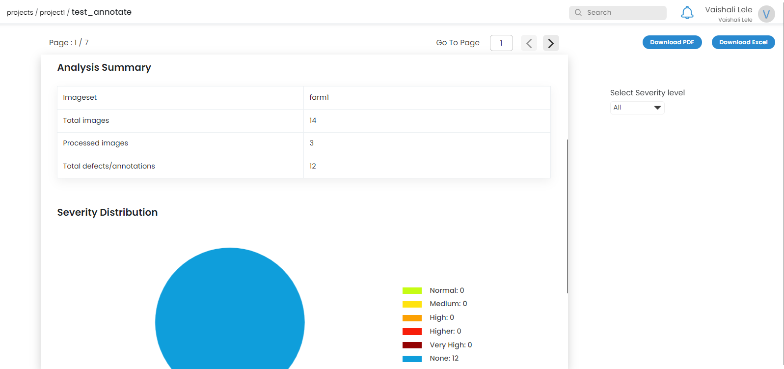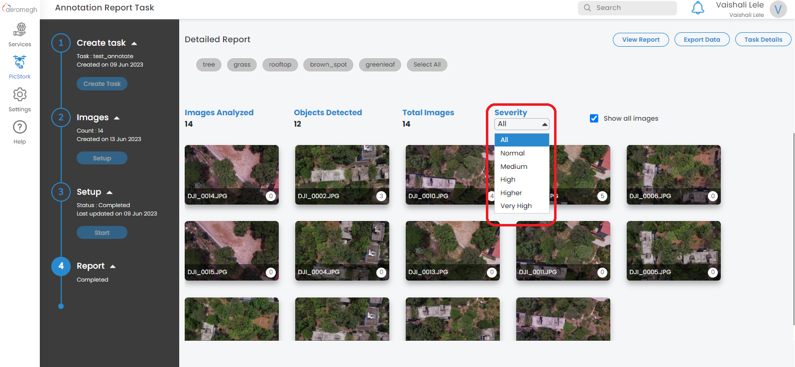 The user can set the severity level of accuracy as Normal, Medium, High, Higher, and Very High as shown in the following image. You can see all the images used for object detection by selecting "All" option from the severity.&#x20;